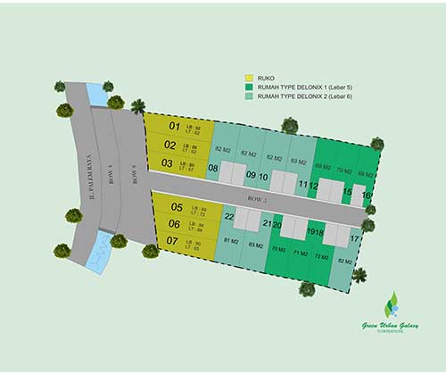 Tersedia dua type rumah dua lantai, Type Delonix 1 dengan lebar muka bangunan 5 meter dan Type Delonix 2 dengan lebar muka bangunan 6 meter, juga tersedia 6 unit ruko minimalis dua lantai